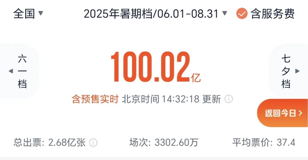 在多部热门影片共同推动下,2025年暑期档突破100亿元。