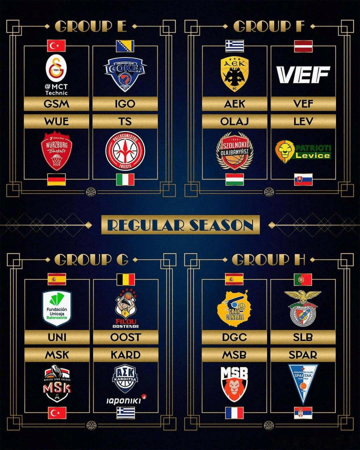 H组大加那里岛队、本菲卡队、勒芒队、KK斯巴达克队