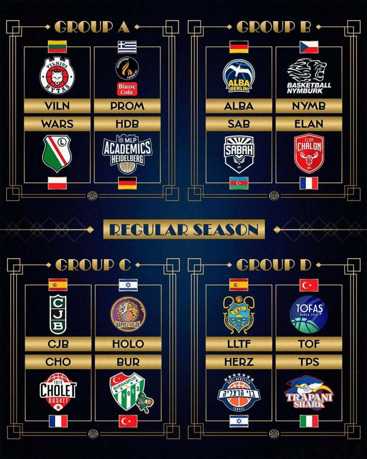 虎扑09月30日讯FIBA官方更新社媒,公布新赛季篮球冠军联赛参赛队伍。